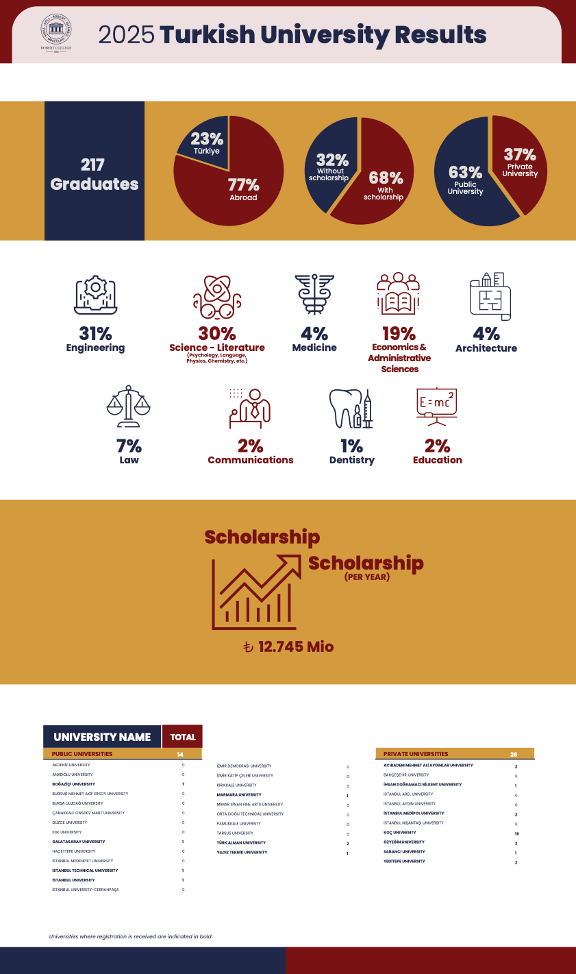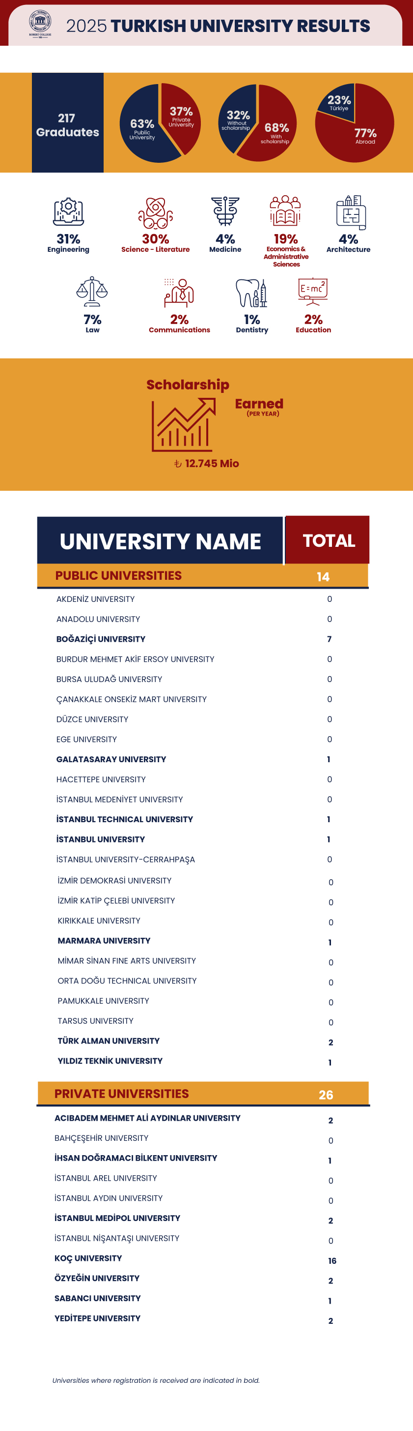 Universities in bold indicate where students have officially enrolled.